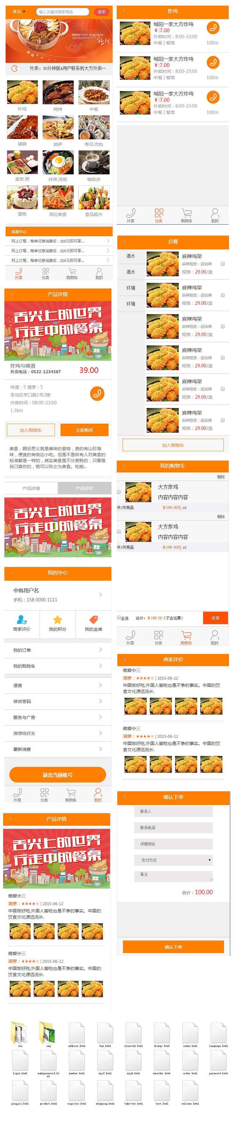 给韩国客户做的一套订餐外卖html,包含首页,图文式,产品图,列表式,详情页面,评论页面,下单,购物车,个人资料等等纯html+css