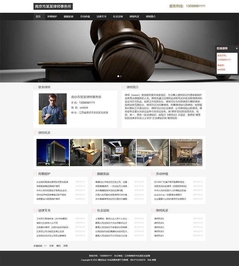 (自适应手机版)响应式律师事务所网站pbootcms模板 HTML5个人律师网站源码下载